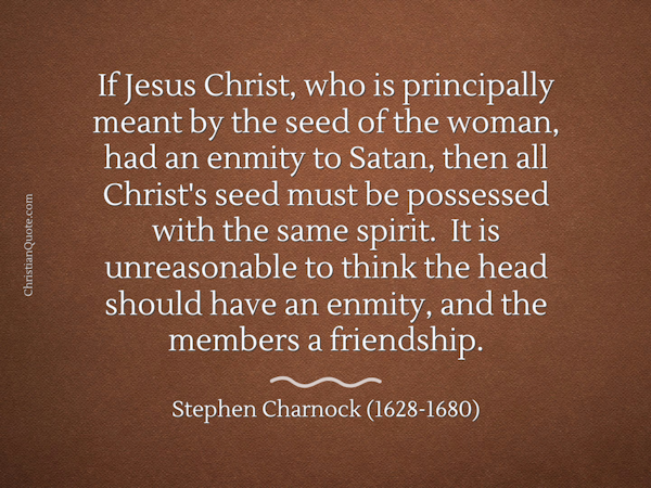 If Jesus Christ, who is principally meant by the seed of the woman, had an enmity to Satan, then all Christ’s seed must be possessed with the same spirit. It is unreasonable to think the head should have an enmity, and the members a friendship.
