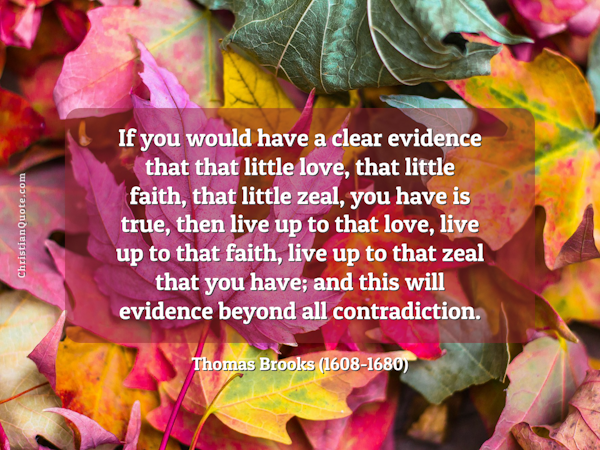 If you would have a clear evidence that that little love, that little faith, that little zeal, you have is true, then live up to that love, live up to that faith, live up to that zeal that you have; and this will evidence beyond all contradiction.