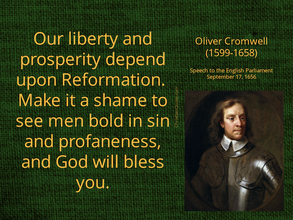 Our liberty and prosperity depend upon Reformation. Make it a shame to see men bold in sin and profaneness, and God will bless you.