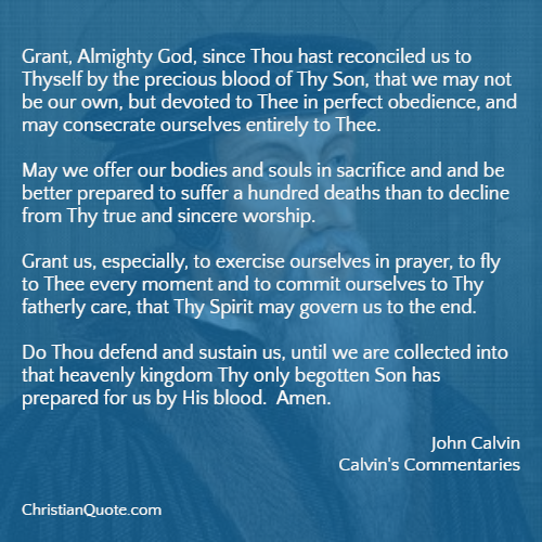Grant, Almighty God, since Thou hast reconciled us to Thyself by the precious blood of Thy Son, that we may not be our own, but devoted to Thee in perfect obedience, and may consecrate ourselves entirely to Thee.