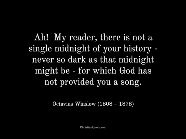 Ah! My reader, there is not a single midnight of your history – never so dark as that midnight might be – for which God has not provided you a song.